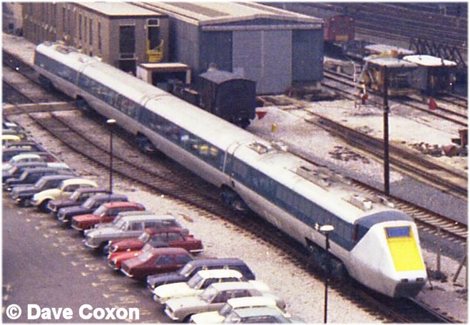 | The APT-E (Advanced Passenger Train - Experimental) consisted of two driving power cars (PC1 and 2) and two trailer cars (TC1 and 2). The power cars were equipped with four 300 HP Leyland 350 gas turbines (and a fifth for auxiliary power supplies) and two GEC 253AY nose suspended traction motors on the leading bogies. Each vehicle was approx 70ft long with articulated bogies between them. |
